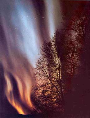 IT ALWAYS seems to happen when you expect it least. I remember driving home through Washington State late one December night when the sky to the north was suddenly cleaved by an arc of light. Shooting star effects played all along the line, and long pillars of light sporadically pulsed up beyond the zenith of the sky. White tinged with deep blues and greens predominated. Just after I crossed the Nooksack River, a lush red aurora burst out in the lower reaches of the arc. Deepening to a portentous magenta, the stain spread downward into the bare birch branches. Then as quickly as it had come, the aurora borealis -- the northern lights -- faded back to a pale distant greenish smear in the sky. Despite the fact that this dramatic display was within view of millions of people in the Vancouver and Seattle areas, the show went almost entirely unnoticed. There were no forecasts or follow-ups in the media. One thousand miles away in Boulder, Colorado, however, researchers at the U.S. Space Environment Service Center had known there would be a strong aurora display almost a day in advance. Monitoring the sun with telescopes and satellites, they picked up what Phil Powell, a forecaster at the National Oceanic and Atmospheric Administration (NOAA), called "a major disturbance" on the surface of the sun which sent a stream of charged particles shooting through the solar system. Scientists today believe that the aurora borealis is caused by these "solar wind" particles interacting with the Earth's geomagnetic field beyond the upper atmosphere in the area called the magnetosphere. According to Syun-Ichi Akasofu of the University of Alaska's Geophysical Institute, the solar wind generates huge quantities of electricity in the magnetosphere. This energy accelerates particles into the upper atmosphere where they strike atoms of various gases, producing the characteristic colors and staining the sky with dancing light. The first person to make the a vital connection between the aurora and the sun was the English astronomer and physicist Richard Carrington. On September 1, 1859, he observed a solar flare. Two nights later, intense auroras covered much of Europe. Carrington immediately noted the connection but refused to jump to conclusions. ("One swallow does not make a summer," he remarked.) Despite his caution, Carrington's initial intuition was to have a tremendous effect on both astronomy and the heavenly notions of wider society, for it established once and for all that it was not ice, nor radium, nor torchlight on angels' wings, but mighty explosions on the sun that lit the northern lights. The height of the aurora is roughly 65 miles above sea level, or ten times higher than the highest cloud. Typically, the aurora tends to follow a progression of forms during the course of the night. In the early evening, between 7 and 10 P.M., the aurora might appear as a smooth arc of light curving from horizon to horizon like a pearly rainbow. Later, the lights often become more active, dancing and developing vertical bars known as rays. The most expressive stage occurs around midnight or after, when the lights may show red and yellow in a variety of forms. During early morning, the aurora characteristically becomes patchy and paler, and may resemble the light in the sky above a nearby city or town. Viewed from space, the aurora borealis and its southern twin, the aurora australis, appear as halos of fire around each pole. They may expand in diameter and distance from the poles (the stronger the current in the generator, the farther toward the equator the lights appear). However, recent photographic evidence has shown that they are almost always present. Rocket experiments conducted by the University of Minnesota have also shown that the aurora borealis and aurora australis mirror each other exactly. The most interesting of the many recent discoveries regarding the aurora, though, may be the existence of what researchers call the "theta aurora." On November 8, 1981, a University of Iowa experiment captured for the first time a sequence of images showing the formation and eventual breakup several hours later of an auroral bridge over the pole, resembling the cross piece in the Greek letter theta. In ancient times, the northern lights were commonly seen as omens and indications of the supernatural, especially during those rare occasions when they appeared in more southerly latitudes. The Old Testament Book of Maccabees contains a wild description of gold-clad horsemen charging across the skies of the Middle East, which probably refers to a strong aurora around 176 B.C. The faerie horsemen of old Irish legends may also relate to of aurora, as may the descriptions of "fires in the air" over the Ardennes region of France in 1583. The latter sent thousands of penitents to Reims and Paris "to say their prayers and make offerings at the great churches," according to the journal of Henri III. Eskimos, who knew the aurora better than other cultures, were no less impressed. In Labrador, for instance, the natives long believed that the aurora marked the passage to heaven of the spirits of people who had died a voluntary or violent death. The reign of science has diminished the awe that the aurora formerly inspired, but today people are actually more vulnerable to the power of the aurora and its geomagnetic disturbances than ever before. For one thing, it affects defense systems. Juan Roederer, director of the Geophysical Institute in Fairbanks, has written that strong auroras can interfere with early-warning radar watching for transpolar bomber attacks. During World War II, people noticed for the first time that the aurora could produce false images and other distortions on conventional radar, according to Neal B. Brown, range supervisor of the Geophysical Institute's Poker Flat research range. More advanced radar systems have also been shown to become ineffective when an aurora dimples the surface of reflective layers in t