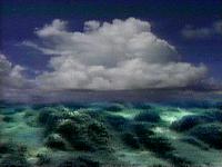 Eventually, the clouds broke, and the sun's rays spread across a new world covered with broad blue oceans.