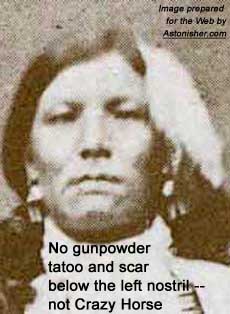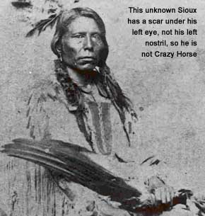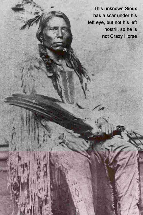 This unknown Sioux has a scar under his left eye -- not his left nostril -- so he is not Crazy Horse.