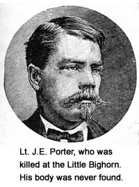 Lt. J.E. Porter's clothes were found in the debris of the huge Sioux and Cheyenne village after the Battle of the Little Bighorn, but his body was never found.