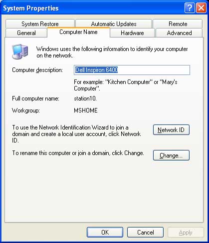 Workgroup setup in Windows XP (ABOVE LEFT) and Windows 7 (ABOVE RIGHT). The Workgroup name must be identical on all Windows XP and Windows 7 machines., as shown here. |