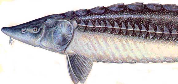 Norman Adams's original white sturgeon illustration from Field & Stream. |
