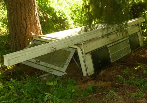 The steel box that used to house the two-way radio (with tubes, no less) now holds tools, jack, etc. You can see the original Forest Service light green paint showing through the dark green I had the truck painted in the early 1980s.
