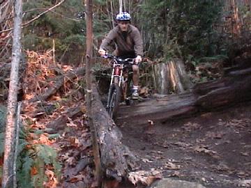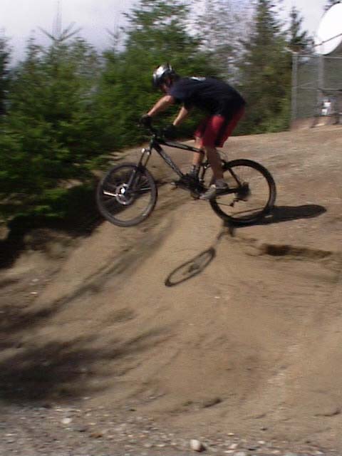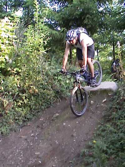 Julie smiling at the end of a flying dismount on the old, now lost 12 Monkeys... |