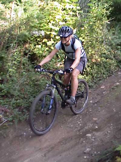 Galbraith Mt. legend Cathy Crouch cutting through the fireweed on Naughty Nellie... |