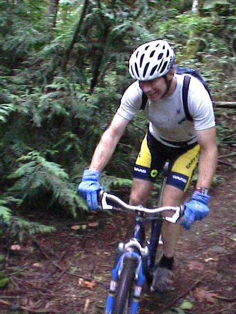 Colorado Todd grinnin' on Rock 'n Roll, AKA the Polka Dot Trail (dig the blue ski gloves with yellow lycra)... |