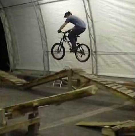 Mr. Air, Russ Barlow, gettin' air on his KHS Witch Doctor at the old Clark Cycle's first Freeride Party. Here's what happens if you let Russ loose... |