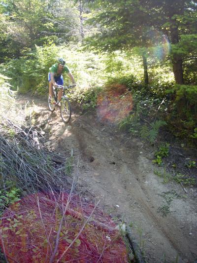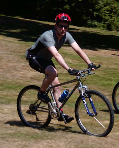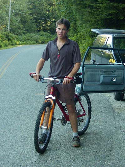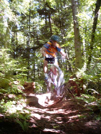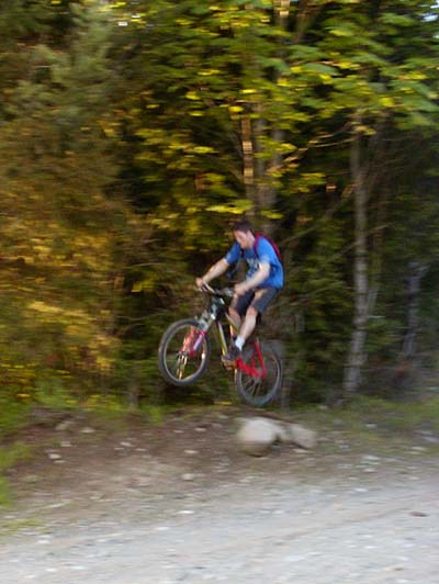 Jon Hansen trying out his buddy's bike on Galbraith Lane... |