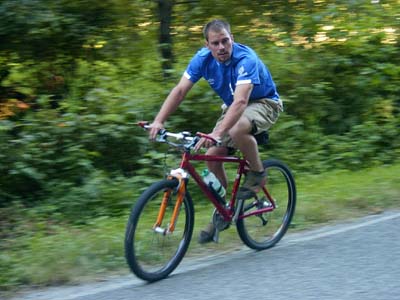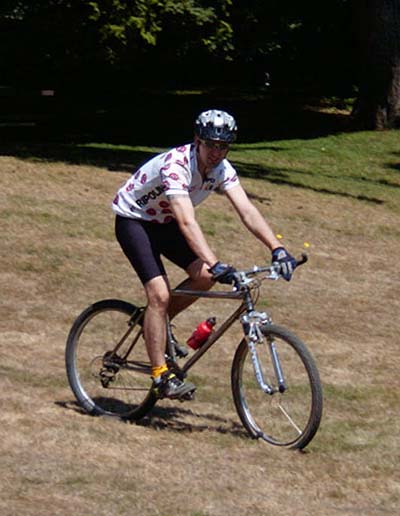Herb Hogan punching up over the Big Gnarly on his single speed bike... |