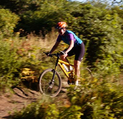 Missy Belles flying down the Ridge Trail on another Cannondale Jekyll with a Lefty... |