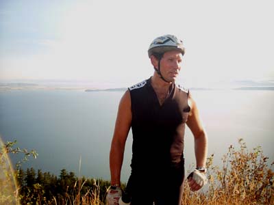 Randy McKee getting ready in Whatcom Falls Park in September 2000, with what was then the GalbraithMt.com