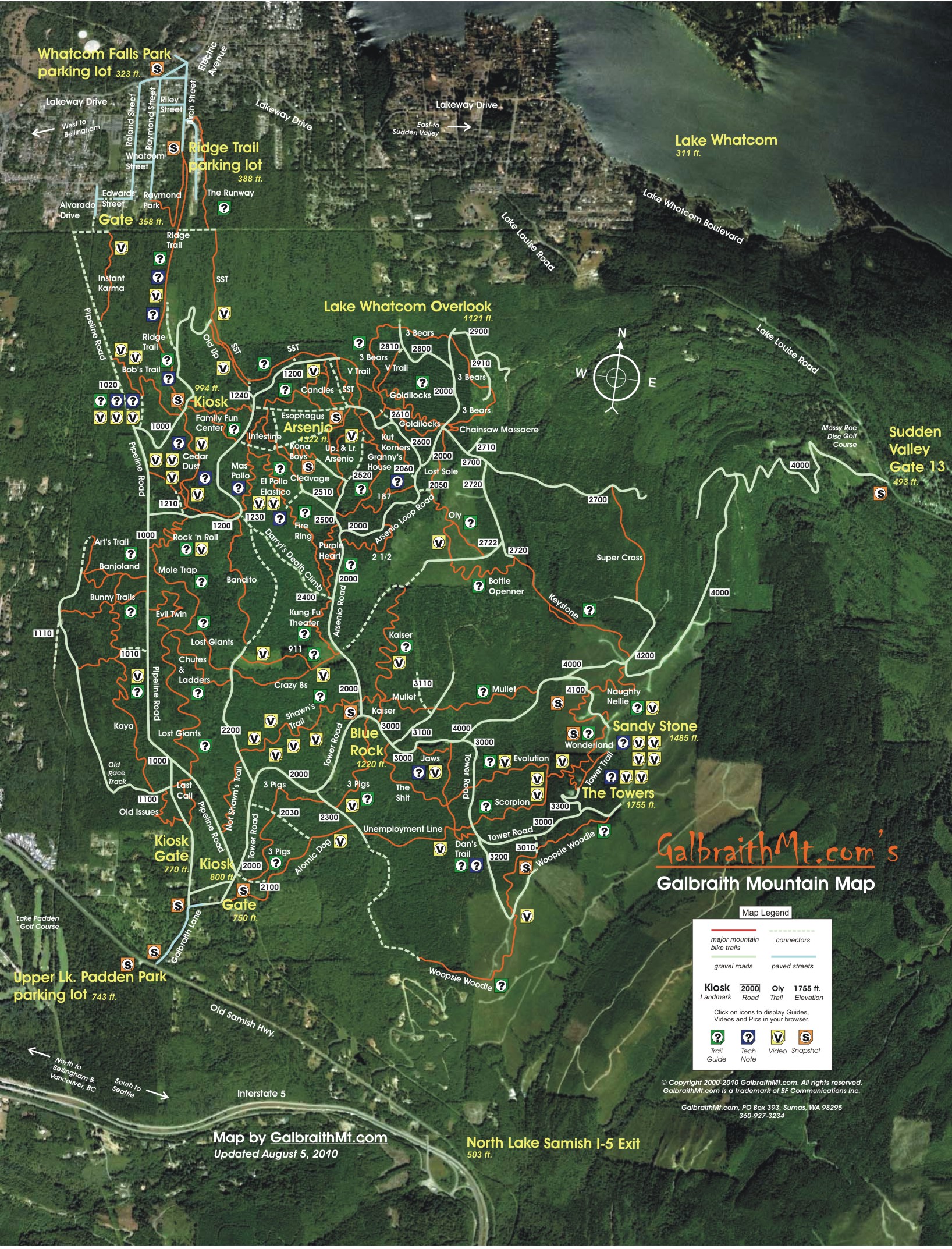 HERE'S THE BIG BELLS and whistles version of the GalbtraithMt.com Trail Map, with Hot Links to all our Trail Guides, Technical Notes and Video Clips. You can use this version online to really get to know the mountain.