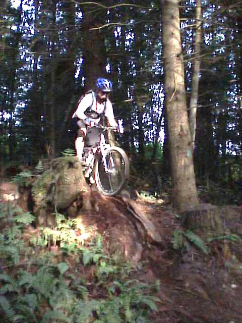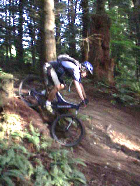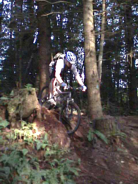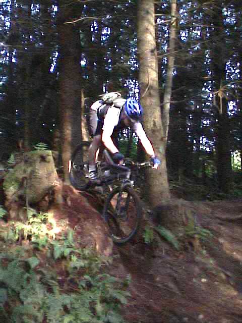 Yet this drop is very rideable if you ride the Big Drop on Bob's Trail, for instance. In fact, as Jason Ploskuniak demonstrates above, you don't even need a full suspension bike. A hard tail with a three year old, three inch travel fork will do!