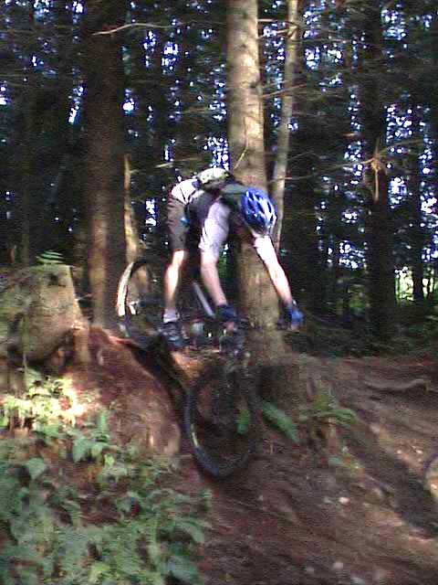 IN 2004, a new twist was added in the form of a slotted cedar log drop directly to the gravel road. Again, it looks like a really bad idea from the top, but if you have your weight back enough you can roll right on through.